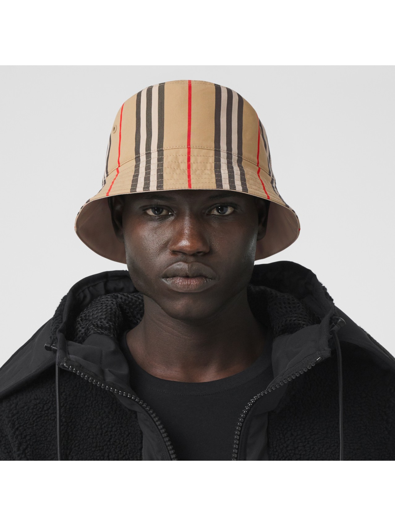 Reversible Icon Stripe Cotton Bucket Hat In Archive Beige Black Burberry Official